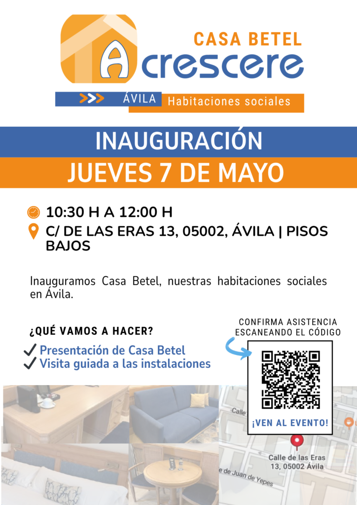El próximo jueves 7 de mayo inauguramos en Ávila Casa Betel, nuestro hogar de habitaciones sociales pensado para dar una respuesta concreta ante una realidad cada vez más extendida: la de jóvenes y familias, especialmente monomarentales, con hijos e hijas menores de edad, que, aún teniendo empleo e ingresos, no logran acceder a una vivienda o incluso a una habitación en condiciones dignas y estables.