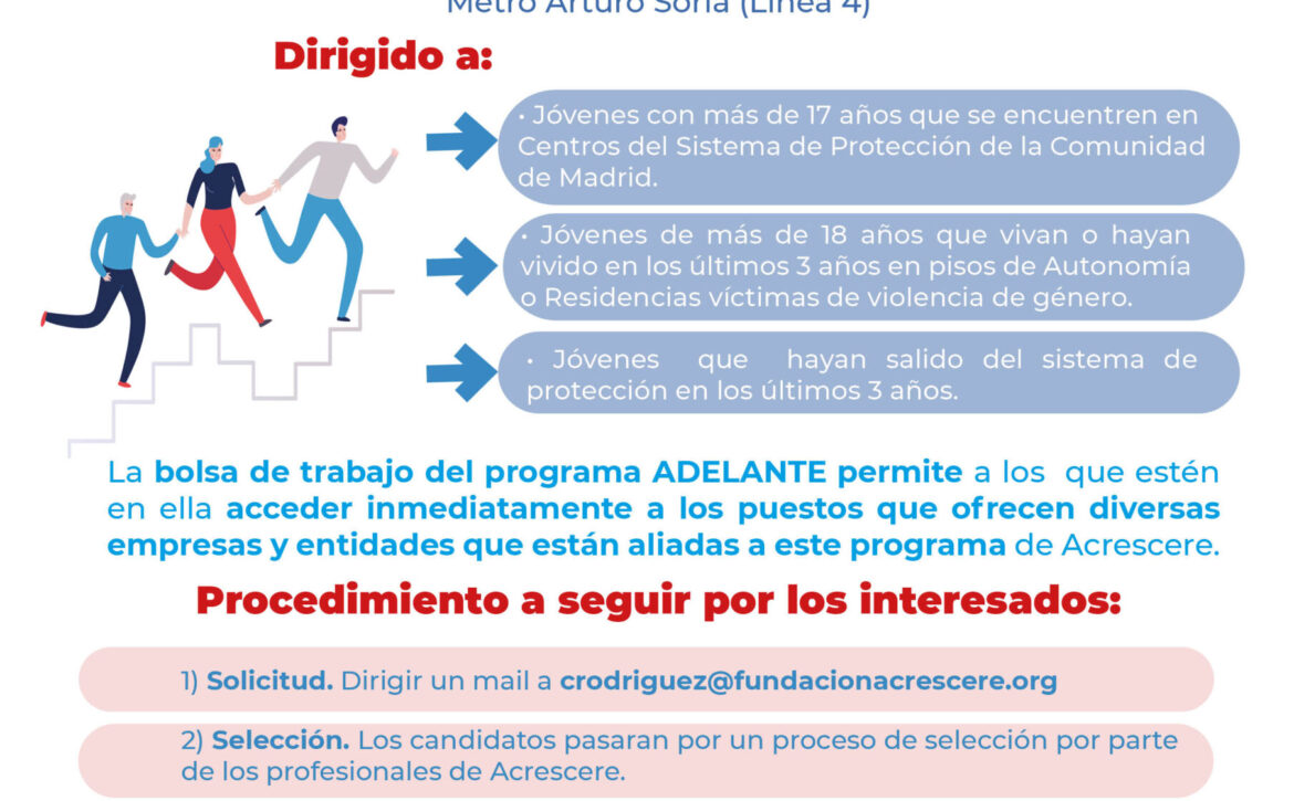 El próximo sábado 14 de junio, de 9:30 a 14:30, tendrá lugar una nueva jornada de acceso a nuestra Bolsa de Empleo Adelante, en nuestras instalaciones de Calle Jaenar. Esta convocatoria está dirigida a jóvenes que buscan incorporarse al mundo laboral y forma parte de nuestra labor por construir un futuro con más oportunidades.
